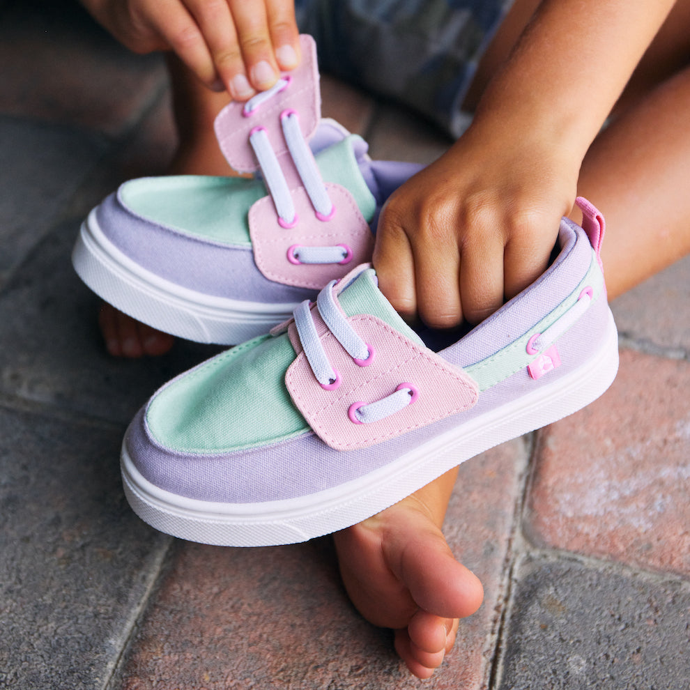 The Jesse is a super cool boat shoe, perfect for any occasion. Made with durable canvas upper, hook & loop closure along with elastic laces for a secure fit, and a foam cushion footbed built atop of our flexible Oomphies outsole.