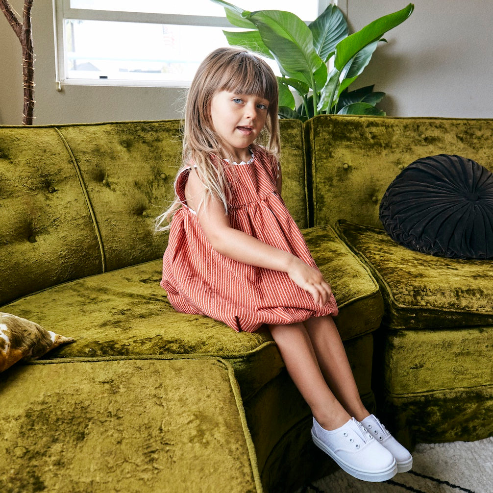 Meet the Robin. Instead of laces, Robin is outfitted with an elastic strap that sits under the eyelets, and right above the tongue for a secure fit. All Oomphies come with a foam cushion footbed, this set in particular matches the same color of the upper, built on top of our flexible Oomphies outsole. These kid favorite shoes are stylish, practical and functional! Oomphies kids' shoes are kid-friendly and parent approved!